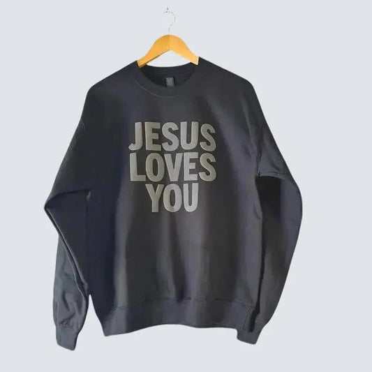 Jesus Loves You Puff Print Crewneck Sweatshirt