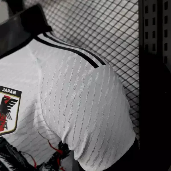 Front: The Japan Football Association (JFA) badge is prominently displayed on the chest, confirming its identity as a Japan national team jersey. Next to the badge, there is a large red circular pattern, reminiscent of elements from the Japanese flag, surrounded by black bird - like motifs, which carry the charm of traditional Japanese culture. Also, the iconic three - stripe logo of Adidas appears in black on the front of the jersey.