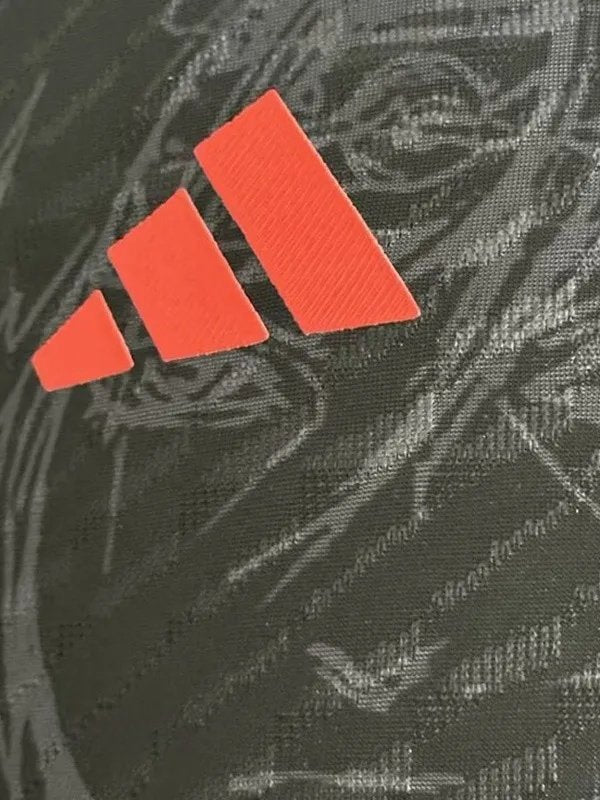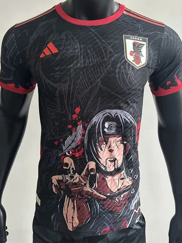 This jersey is a special - edition creation by Adidas for the Japan National Team, perfectly blending Japanese cultural elements with sports fashion. Dominated by a black base color and accented with striking red details, it delivers a strong visual impact. The prominent Adidas logo on the front, with the iconic three stripes in red, stands out sharply. Meanwhile, the Japan National Team emblem is meticulously embroidered on one side of the chest. Elements like the crow and soccer ball on the emblem are vividly presented, showcasing the unique charm of Japanese soccer.