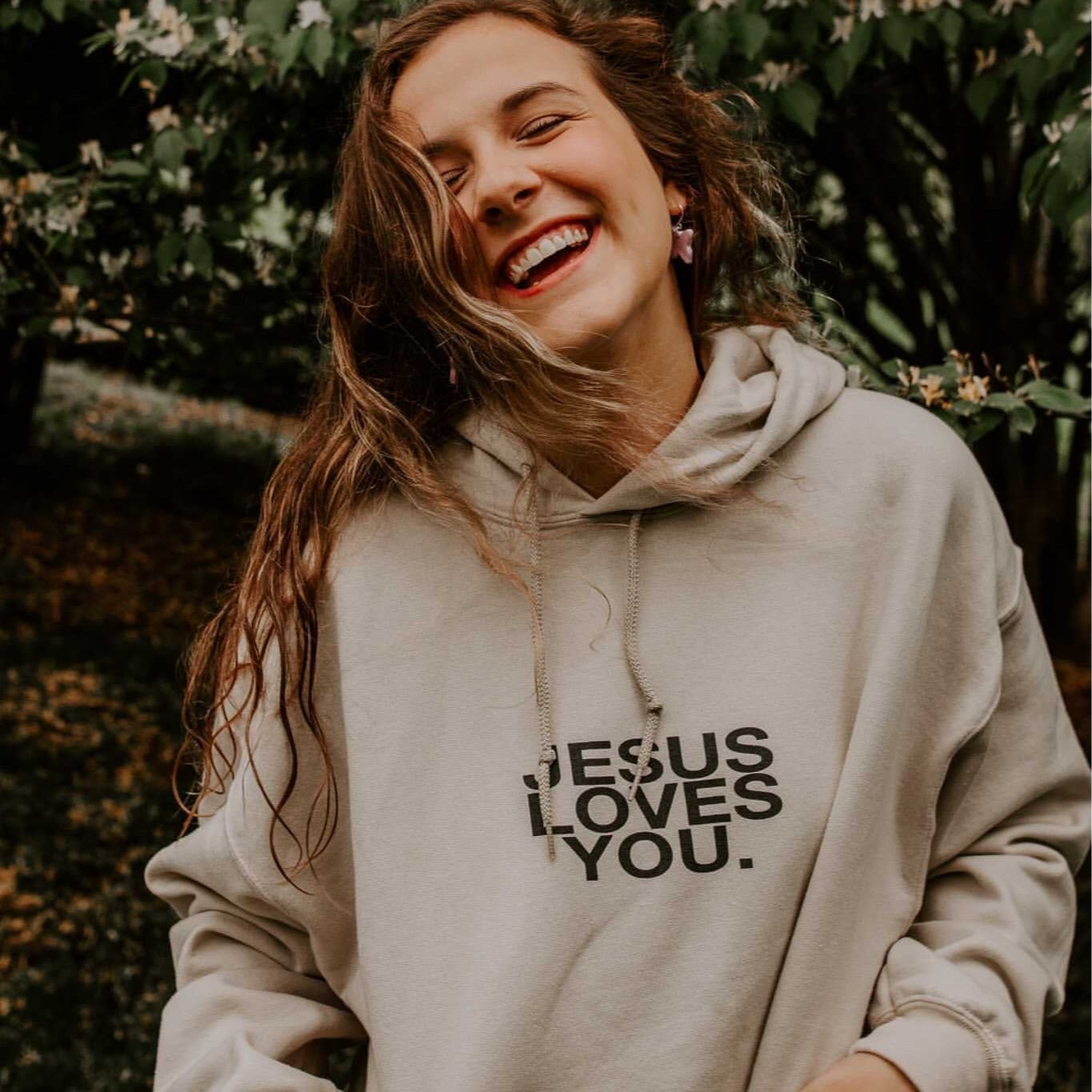 • Signature 'Jesus Loves You.' logo on chest.