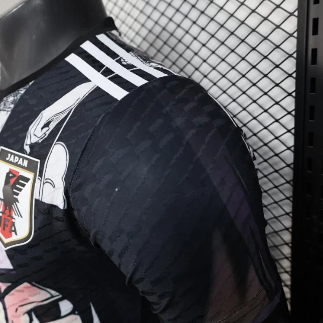 Authentic Badging: The Japan national team crest sits proud on the chest, flanked by the Adidas logo — merging sport heritage with anime swagger.