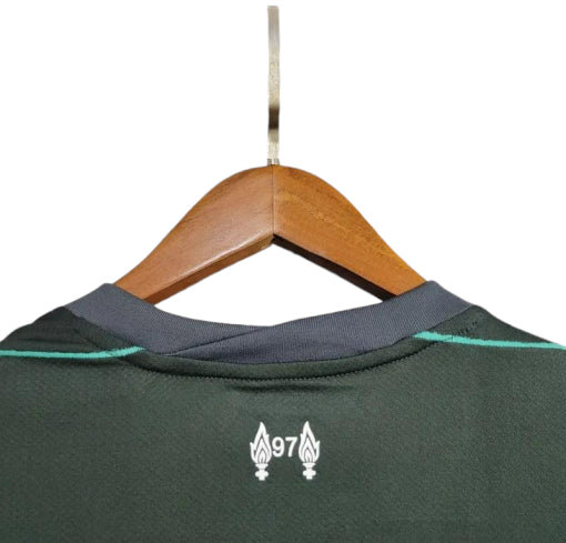 The modern design includes sleek detailing and subtle accents that highlight Liverpool’s dynamic spirit. The club crest is prominently displayed on the chest, symbolizing the pride and history of Liverpool FC. Perfect for fans who want to showcase their support with a unique and modern edge, this away jersey celebrates the club’s legacy and ambition.