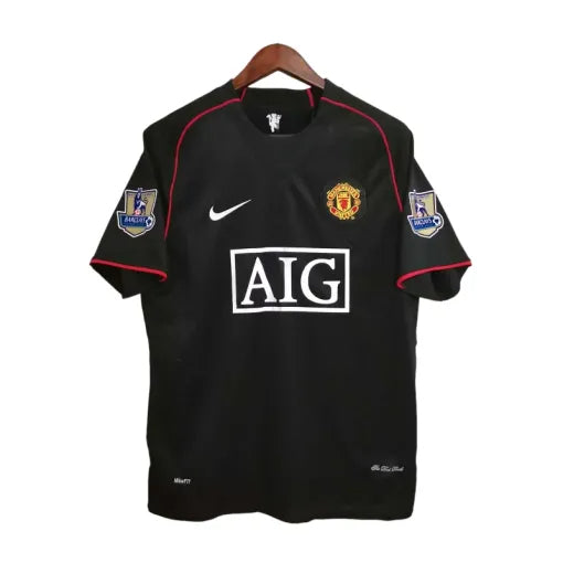 The Manchester United Retro2007/08 Black jersey offers a sleek homage to a historic season. Emulating the iconic kit worn during that memorable campaign, this jersey features a striking black design complemented by the club crest and sponsor logos.