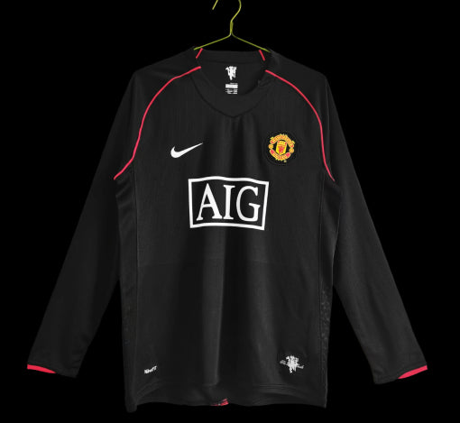 The Manchester United Retro Long Sleeve 2007/08 Black jersey offers a sleek homage to a historic season. Emulating the iconic kit worn during that memorable campaign, this long-sleeved jersey features a striking black design complemented by the club crest and sponsor logos.
